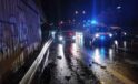 Bariyere çarpan hafif ticari araç yan yattı