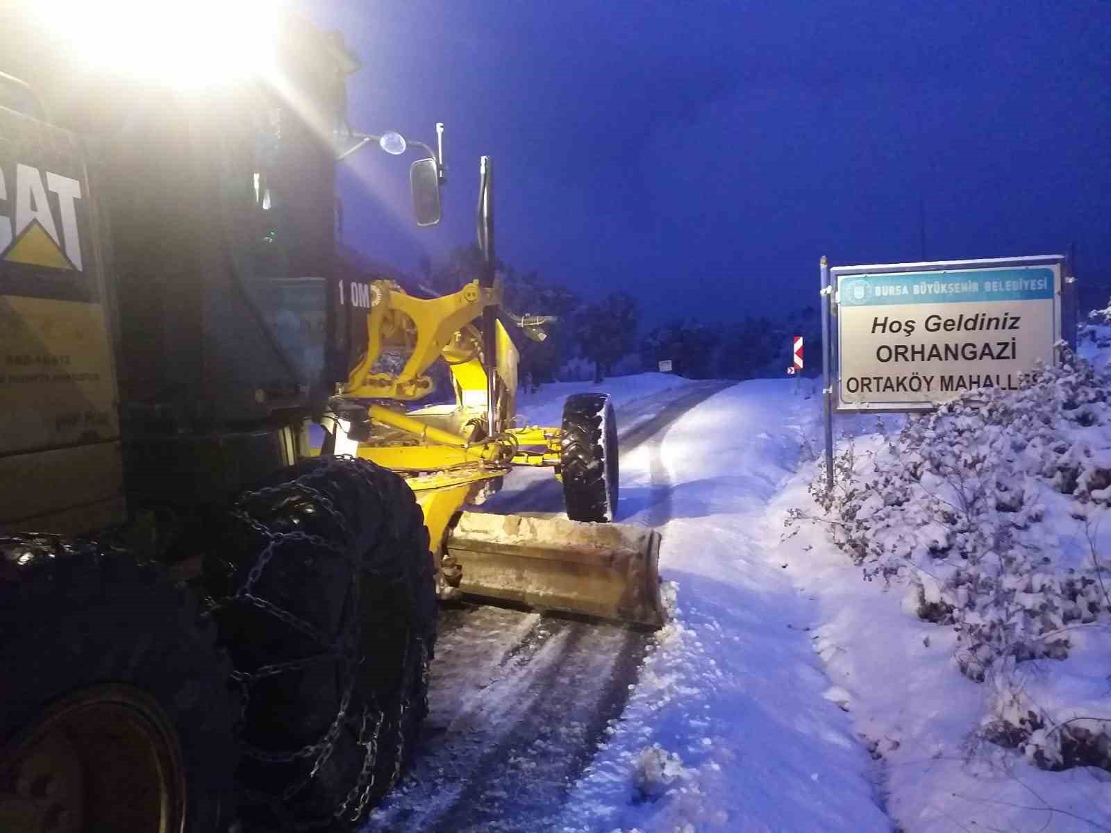 Kar yağışı kent genelinde etkisini gösterirken Bursa Büyükşehir Belediyesi Ulaşım Daire Başkanlığı Yol Bakım ve Onarım Şube Müdürlüğü, karla mücadele çalışmaları kapsamında iki vardiya halinde toplam 460 personel, 65 iş makinası, 35 kar küreme, 21 kürekli tuzlama ekibi ve 38 araçla kardan kapanan 143 mahalle yoluna müdahale etti. Çalışmalar kapsamında Mustafakemalpaşa’da 22, Keles’te 16, Nilüfer’de 15, Kestel’de 14, Karacabey’de 12, İnegöl’de 11, İznik’te 9, Osmangazi’de 8, Büyükorhan’da 7, Orhangazi’de 6, Gemlik’te 5, Orhaneli’de 5, Yenişehir’de 5, Gürsu’da 4, Mudanya’da 3 ve Yıldırım’da 1 mahallenin yolu trafiğe açıldı. Kapalı mahalle yolu bulunmazken, ekipler yağışın devam ettiği bölgelerdeki çalışmalarını kesintisiz sürdürüyor.